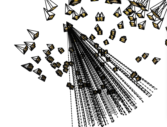 Below is a visualization of the rays and samples (with cameras) on the left. On the right, I’ve made all the rays come from just one camera, to make sure everything looked correct per camera.