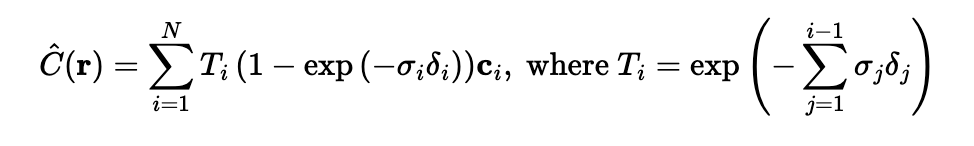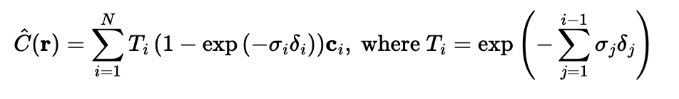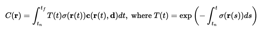 Now, given the output of the MLP, we can actually render an image. The volume rendering equation is given by