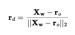 and the ray origin, r_o, which is just the location of the camera, in world coordinates. We can use our previous conversions for this one. I used numpy for all of these conversions.