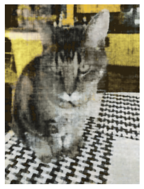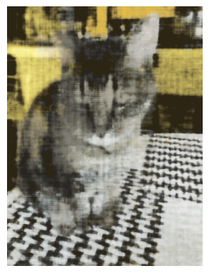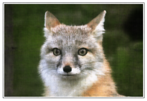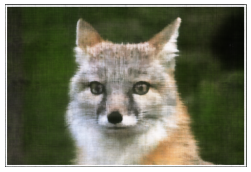 Finally, I tried adding two additional linear + ReLU layers into the architecture. We see that it still doesn’t perform as well as the original architecture, and in particular the entire image has a green hue.